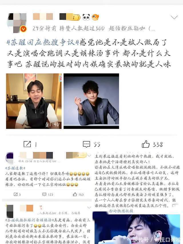或许只有这样,如苏醒,杨丞琳之流才能被排除在门外,网络环境会更加清明。也有部分网友是秉持着“人非圣贤,孰能无过,知错能改,善莫大焉。”的处事态度。他们认为苏醒的发言或许就是无心之失,无需过度解读。况且当事人苏醒已经就不当言论进行了道歉,说明他已经意识到了自己的错误。若是仍然揪着这件事情不放,倒显得自己咄咄逼人不是。