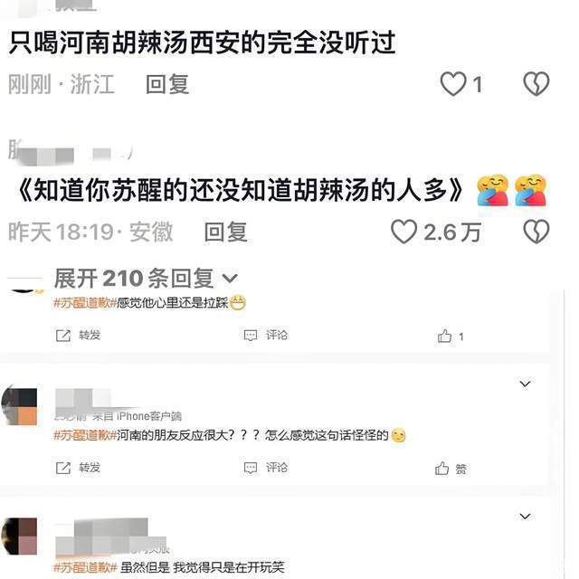 在贬低了河南胡辣汤的同时,还否定了这样一个明显带有地域特色的美食的超前性,肯定会引起河南网友的不满。试想一下如果自己家乡的美食符号被其他省份的人又蹭又踩,会是什么心情呢?所以苏醒对河南胡辣汤的简单否定才会引起很多非议。他因踩一捧一的言论陷入争议,其道歉虽承认表达不当,但部分舆论仍认为其反思深度不足,字里行间都透露着甩锅的嫌疑。